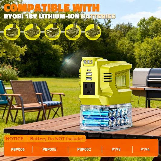 200W 18V Battery Inverter to 110V AC, with Multiple Charging Ports.