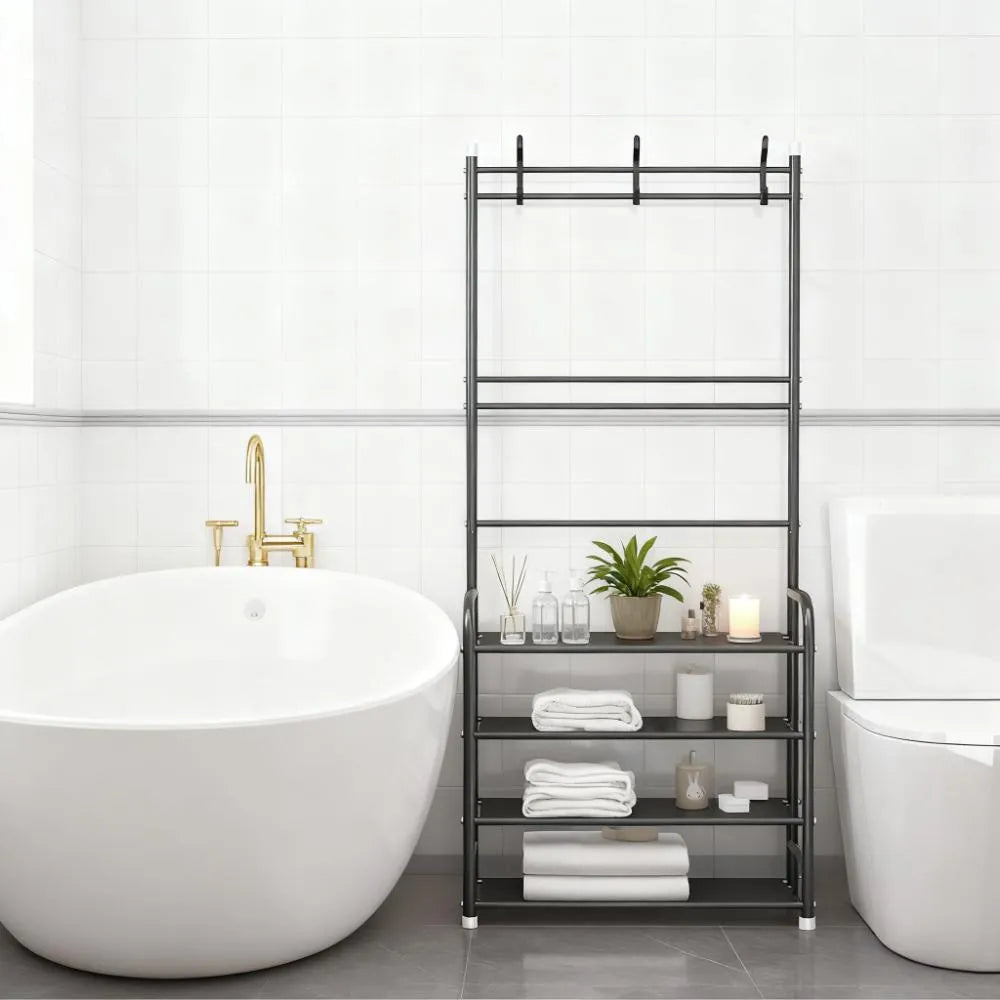 3-in-1 Entryway Organizer - Coat Rack, Shoe Bench & Shelves, Space Saving Design
